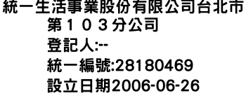 統一生活事業股份有限公司台北市第103分公司