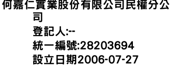 何嘉仁實業股份有限公司民權分公司