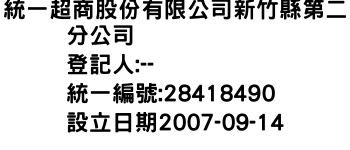 統一超商股份有限公司新竹縣第二分公司