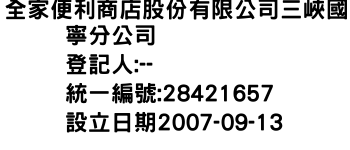 全家便利商店股份有限公司三峽國寧分公司