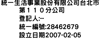 統一生活事業股份有限公司台北市第110分公司