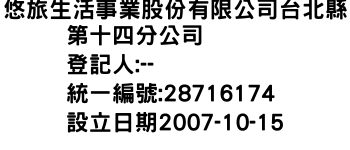 悠旅生活事業股份有限公司台北縣第十四分公司