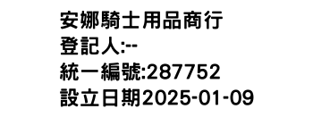 臺北市信義區中坡里中坡南路287號1樓安娜騎士用品商行-統編:00287752
