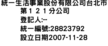 統一生活事業股份有限公司台北市第121分公司