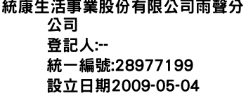 統康生活事業股份有限公司雨聲分公司