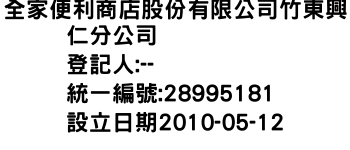 全家便利商店股份有限公司竹東興仁分公司