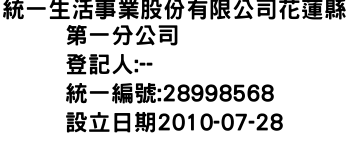統一生活事業股份有限公司花蓮縣第一分公司