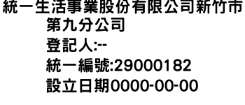 統一生活事業股份有限公司新竹市第九分公司