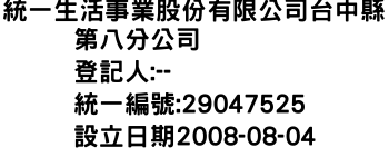 統一生活事業股份有限公司台中縣第八分公司