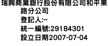 瑞興商業銀行股份有限公司和平東路分公司