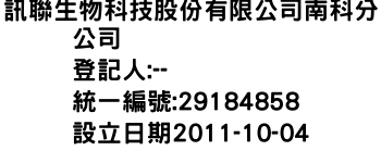 桃園市中壢區幸福里福星一街52號 (1樓)訊聯生物科技股份有限公司南科分公司-統編:29184858