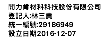 高雄市大社區旗楠路92之10號2樓開力肯材料科技股份有限公司-統編:29186949