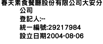 春天素食餐廳股份有限公司大安分公司