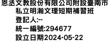 恩丞文教股份有限公司附設臺南市私立明瀚文理短期補習班