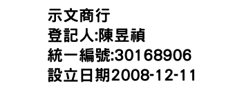 統一編號:30168906