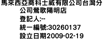馬來西亞商科士威有限公司台灣分公司鶯歌陽明店
