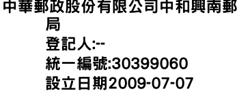 中華郵政股份有限公司中和興南郵局