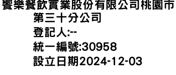 饗樂餐飲實業股份有限公司桃園市第三十分公司