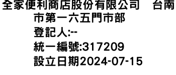 全家便利商店股份有限公司 台南市第一六五門市部
