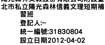 陽光森林文教股份有限公司附設臺北市私立陽光森林信義文理短期補習班