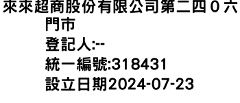 來來超商股份有限公司第二四0六門市