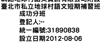 網路地球村語文資訊有限公司附設臺北市私立地球村語文短期補習班成功分班