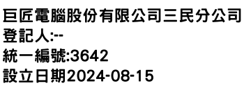 臺北市松山區南京東路5段188號6樓之5巨匠電腦股份有限公司三民分公司-統編:00003642