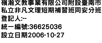 嶺瀚文教事業有限公司附設臺南市私立非凡文理短期補習班同安分班