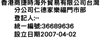 香港商捷時海外貿易有限公司台灣分公司仁德家樂福門市部