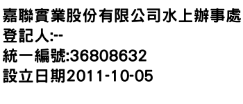 高雄市楠梓區大學十八街33巷15號嘉聯實業股份有限公司水上辦事處-統編:36808632