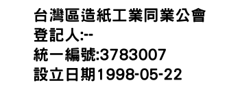新北市三重區重新路5段609巷16號7樓之3台灣區造紙工業同業公會-統編:03783007
