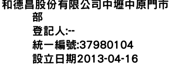 桃園市中壢區永光里環西路2段318號和德昌股份有限公司台中建國北門市部-統編:95318549