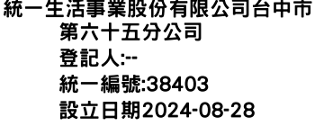 統一生活事業股份有限公司台中市第六十五分公司