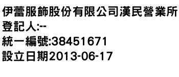伊蕾服飾股份有限公司漢民營業所