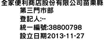 全家便利商店股份有限公司苗栗縣第三門市部