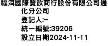 福洱國際餐飲商行股份有限公司通化分公司