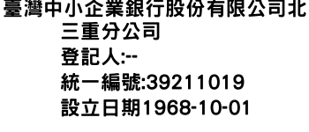 臺灣中小企業銀行股份有限公司北三重分公司