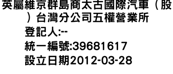 英屬維京群島商太古國際汽車(股)台灣分公司五權營業所