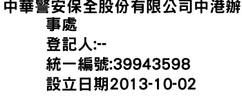 中華警安保全股份有限公司中港辦事處