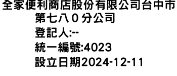 全家便利商店股份有限公司台中市第七八0分公司