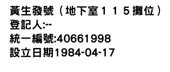 黃生發號(地下室115攤位)