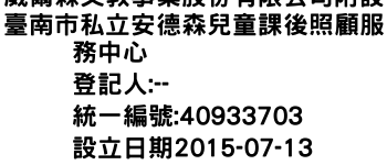 威爾森文教事業股份有限公司附設臺南市私立安德森兒童課後照顧服務中心
