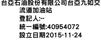 新北市八里區商港路123號(3樓)台亞石油股份有限公司台亞九如交流道加油站-統編:40954072