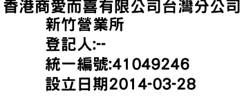 香港商愛而喜有限公司台灣分公司新竹營業所