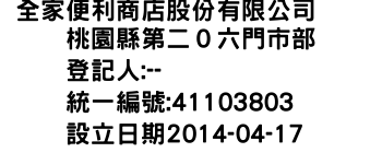 全家便利商店股份有限公司 桃園縣第二0六門市部