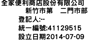 全家便利商店股份有限公司 新竹市第 二門市部