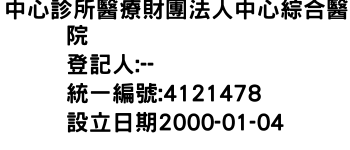 臺北市內湖區葫洲里成功路5段420巷26號中心診所醫療財團法人中心綜合醫院-統編:04121478