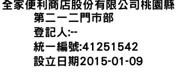 全家便利商店股份有限公司桃園縣第二一二門市部