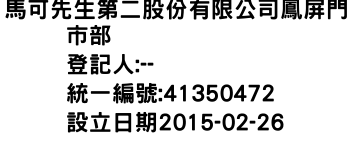 馬可先生第二股份有限公司鳳屏門市部