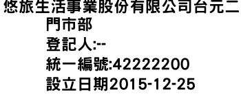 悠旅生活事業股份有限公司台元二門市部